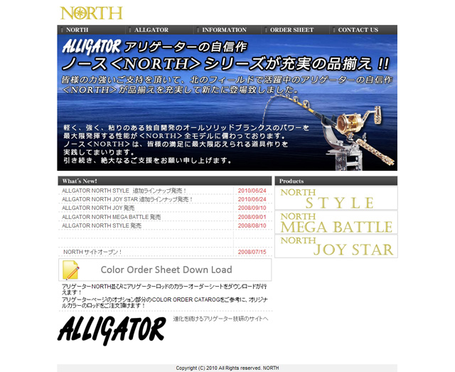 釣り具メーカーアリゲーター社 東北代理店のエフ・エヌ・ジェイ社の、東北モデルNORTHのサイト 東北エリアにターゲットを絞り込み、独自プロディユースの東北エリア限定ロッドを販売。 2013年6月 ブランド変更によりサイト閉鎖