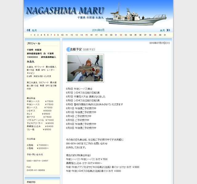 千葉県市原市にあります、釣船 永島丸様の遊漁船サイト。 サイト立ち上げの企画提案・サイトデザインを行っております。 弊社運営の東京湾展望台 遊漁船BLOGサービスを利用。 毎日の釣果を、多彩なディバイスで閲覧が行えるようにしています。