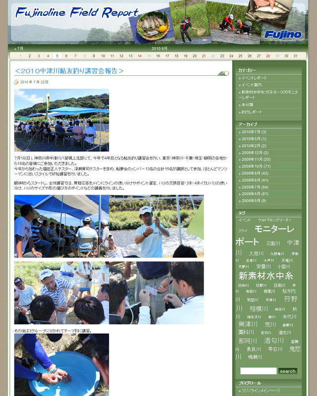 フジノライン株式会社様のレポートページ 既存のカタログサイトに、新製品開発のモニターキャンペーンとして作成。 キャンペーン終了後は、製品やイベント関係のレポートとして運用 2013年4月 サイトリニュアルに伴い閉鎖